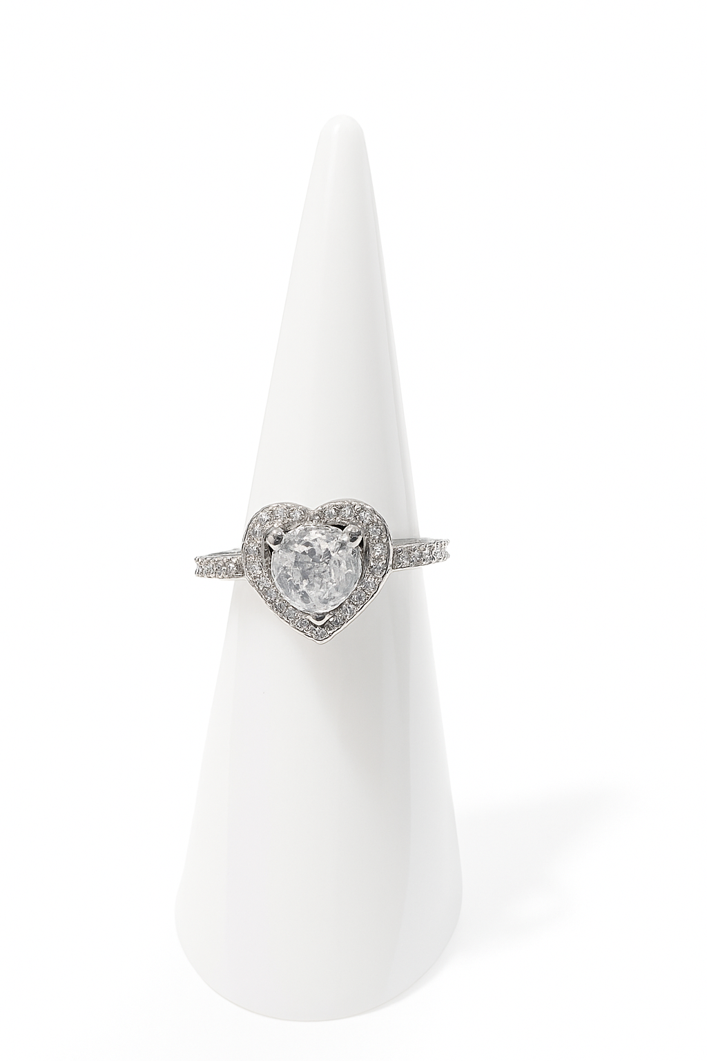 Elegant adjustable ring featuring a sparkling heart-shaped zircon stone surrounded by a delicate halo. Perfect for everyday elegance or special occasions.